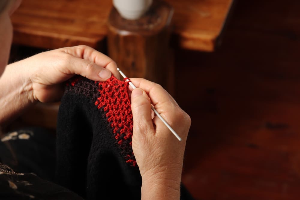 3. Punch needle: Inserta la aguja a través de la tela y luego tira de ella hacia atrás para formar un bucle. La longitud del bucle depende de la abertura ajustable de la agujeta. Repite este proceso para crear una serie de bucles y llenar la zona de tu diseño.